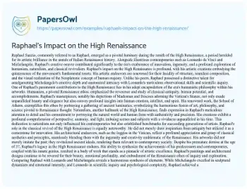 Raphael's Impact on the High Renaissance. (2024, Mar 01). Retrieved from https://hub.papersowl.com/examples/raphaels-impact-on-the-high-renaissance/