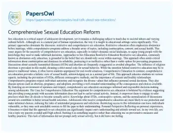 Comprehensive Sexual Education Reform. (2020, Apr 09). Retrieved from https://hub.papersowl.com/examples/real-talk-about-sex-education/