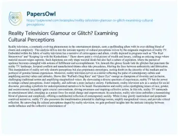 Reality Television: Glamour or Glitch? Examining Cultural Perceptions. (2024, Mar 18). Retrieved from https://hub.papersowl.com/examples/reality-television-glamour-or-glitch-examining-cultural-perceptions/