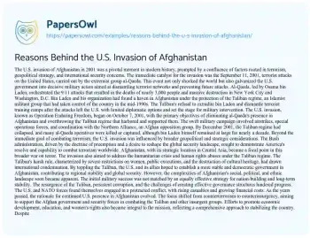 Reasons Behind the U.S. Invasion of Afghanistan. (2024, Jul 16). Retrieved from https://hub.papersowl.com/examples/reasons-behind-the-u-s-invasion-of-afghanistan/