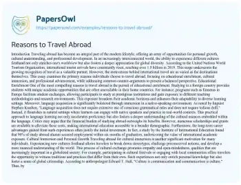 Reasons to Travel Abroad. (2024, Dec 27). Retrieved from https://hub.papersowl.com/examples/reasons-to-travel-abroad/