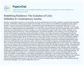 Order now The typical responses were reactive, aimed at recuperation and restoring the prior status quo. Nowadays, we are increasingly facing a range of subtler, more systemic challenges such as climate change, digital security threats, widespread misinformation, and persistent inequalities. These challenges are not only complex and intertwined but also global, necessitating a revised understanding of resilience.