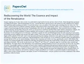 Rediscovering the World: The Essence and Impact of the Renaissance. (2024, Mar 25). Retrieved from https://hub.papersowl.com/examples/rediscovering-the-world-the-essence-and-impact-of-the-renaissance/