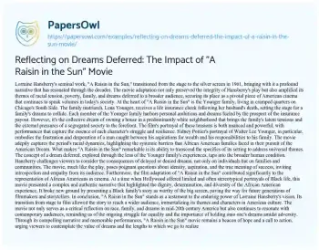 Reflecting on Dreams Deferred: The Impact of "A Raisin in the Sun" Movie. (2024, Apr 01). Retrieved from https://hub.papersowl.com/examples/reflecting-on-dreams-deferred-the-impact-of-a-raisin-in-the-sun-movie/