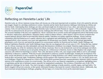 Reflecting on Henrietta Lacks' Life. (2025, Jul 18). Retrieved from https://hub.papersowl.com/examples/reflecting-on-henrietta-lacks-life/