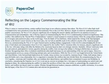 Reflecting on the Legacy: Commemorating the War of 1812. (2024, Mar 25). Retrieved from https://hub.papersowl.com/examples/reflecting-on-the-legacy-commemorating-the-war-of-1812/