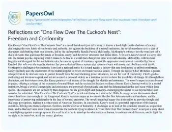 Reflections on "One Flew Over The Cuckoo's Nest": Freedom and Conformity. (2024, Mar 01). Retrieved from https://hub.papersowl.com/examples/reflections-on-one-flew-over-the-cuckoos-nest-freedom-and-conformity/