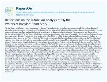"By the Waters of Babylon," a short story penned by Stephen Vincent Benét, is a compelling post-apocalyptic tale that explores themes of knowledge, discovery, and the cyclical nature of civilization. Set in a future where industrial civilization has collapsed, the story follows a young protagonist, John, a son of a priest in a tribal society, on his journey of discovery and enlightenment. This essay delves into the narrative, themes, and symbolism of "By the Waters of Babylon," examining its significance in the realm of speculative fiction and its reflection on human nature and society.