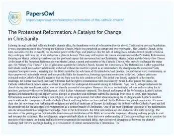 The Protestant Reformation: A Catalyst for Change in Christianity. (2021, Apr 27). Retrieved from https://hub.papersowl.com/examples/reformation-of-the-catholic-church/