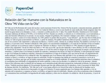 Además, Octavio Paz reflexiona sobre la relación del ser humano con la naturaleza desde diferentes perspectivas, incluyendo la historia, la literatura y la cultura. También menciona algunos de los personajes literarios que han sido influenciados por la naturaleza, como el personaje de Moby Dick de Herman Melville.