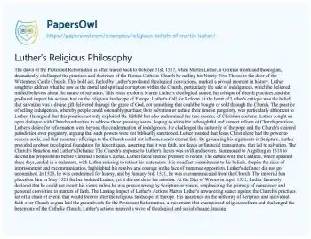Luther's Religious Philosophy. (2021, May 14). Retrieved from https://hub.papersowl.com/examples/religious-beliefs-of-martin-luther/