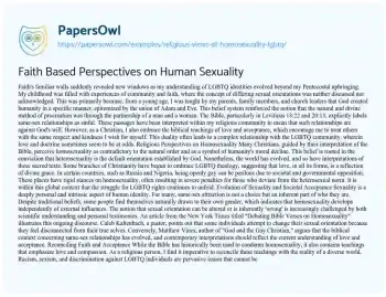 Faith Based Perspectives on Human Sexuality. (2021, Apr 12). Retrieved from https://hub.papersowl.com/examples/religious-views-of-homosexuality-lgbtq/