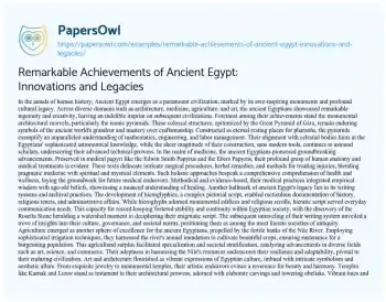 Remarkable Achievements of Ancient Egypt: Innovations and Legacies. (2024, Jun 01). Retrieved from https://hub.papersowl.com/examples/remarkable-achievements-of-ancient-egypt-innovations-and-legacies/