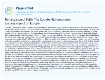 Renaissance of Faith: The Counter-Reformation's Lasting Impact on Europe. (2024, Feb 01). Retrieved from https://hub.papersowl.com/examples/renaissance-of-faith-the-counter-reformations-lasting-impact-on-europe/