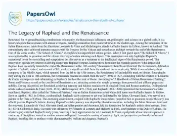 The Legacy of Raphael and the Renaissance. (2021, Apr 26). Retrieved from https://hub.papersowl.com/examples/renaissance-the-rebirth-of-culture/