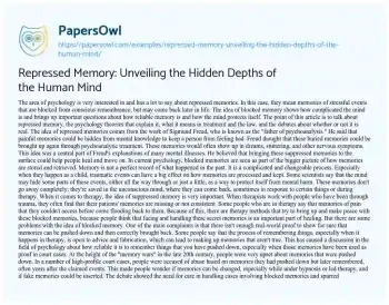Repressed Memory: Unveiling the Hidden Depths of the Human Mind. (2023, Nov 24). Retrieved from https://hub.papersowl.com/examples/repressed-memory-unveiling-the-hidden-depths-of-the-human-mind/