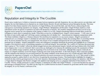 Reputation and Integrity in The Crucible