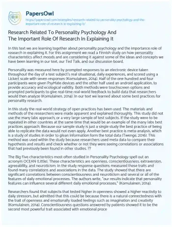 Research Related To Personality Psychology And The Important Role Of Research In Explaining It. (2022, Aug 17). Retrieved from https://hub.papersowl.com/examples/research-related-to-personality-psychology-and-the-important-role-of-research-in-explaining-it/