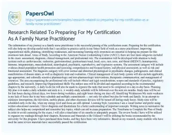 Research Related To Preparing For My Certification As A Family Nurse Practitioner. (2022, Aug 19). Retrieved from https://hub.papersowl.com/examples/research-related-to-preparing-for-my-certification-as-a-family-nurse-practitioner/