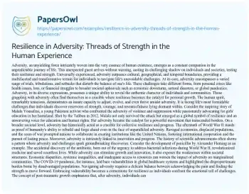 Resilience in Adversity: Threads of Strength in the Human Experience. (2024, Feb 20). Retrieved from https://hub.papersowl.com/examples/resilience-in-adversity-threads-of-strength-in-the-human-experience/