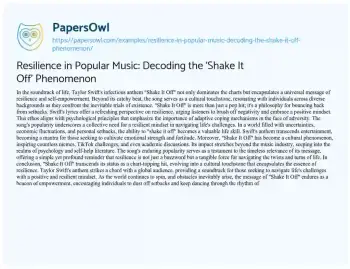 Beyond its catchy melody, the essay delves into the universal message of resilience and self-empowerment embedded in the song’s lyrics. Swift’s anthem becomes a mantra for navigating life’s challenges, transcending the realm of pop music to influence discussions in psychology and self-help literature. Uncover the song’s enduring popularity and its profound impact on shaping a resilient mindset, offering a refreshing perspective on bouncing back from setbacks in a world filled with uncertainties. On PapersOwl, there’s also a selection of free essay templates associated with Popular Music.