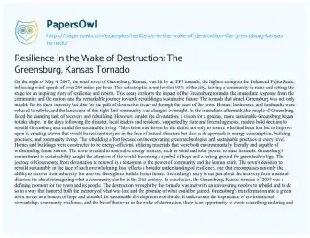 Resilience in the Wake of Destruction: The Greensburg, Kansas Tornado. (2024, Mar 01). Retrieved from https://hub.papersowl.com/examples/resilience-in-the-wake-of-destruction-the-greensburg-kansas-tornado/