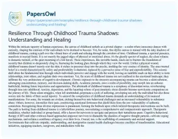 Resilience Through Childhood Trauma Shadows: Understanding and Healing. (2024, Mar 12). Retrieved from https://hub.papersowl.com/examples/resilience-through-childhood-trauma-shadows-understanding-and-healing/