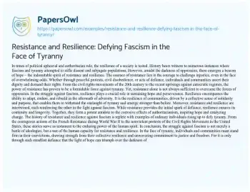 Resistance and Resilience: Defying Fascism in the Face of Tyranny. (2024, Mar 12). Retrieved from https://hub.papersowl.com/examples/resistance-and-resilience-defying-fascism-in-the-face-of-tyranny/