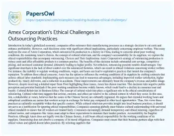 Amex Corporation’s Ethical Challenges in Outsourcing Practices. (2021, Nov 22). Retrieved from https://hub.papersowl.com/examples/resolving-business-ethical-challenges/