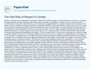 The Vital Role of Respect in Society. (2022, Jun 20). Retrieved from https://hub.papersowl.com/examples/respect-and-reputation/