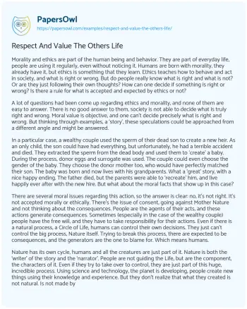 Respect And Value The Others Life. (2022, Jun 20). Retrieved from https://hub.papersowl.com/examples/respect-and-value-the-others-life/
