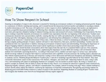 This essay will discuss the importance of fostering respect in the classroom. It will cover strategies for teachers to create a respectful learning environment, the benefits of mutual respect on student behavior and learning, and the challenges in maintaining respect in diverse classroom settings. Moreover, at PapersOwl, there are additional free essay samples connected to Education System.