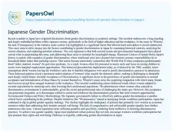 Japanese Gender Discrimination. (2021, May 20). Retrieved from https://hub.papersowl.com/examples/resulting-factors-of-gender-discrimination-in-japan/