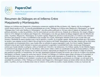 Resumen de Diálogos en el Infierno Entre Maquiavelo y Montesquieu