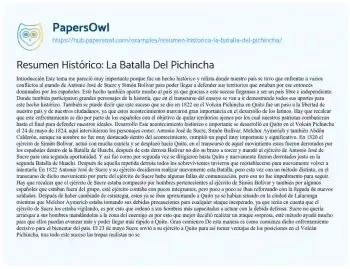 Resumen Histórico: La Batalla Del Pichincha. (2026, Feb 06). Retrieved from https://hub.papersowl.com/examples/resumen-historico-la-batalla-del-pichincha/