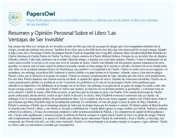 Resumen y Opinión Perosnal Sobre el Libro 'Las Ventajas de Ser Invisible'. (2026, Feb 06). Retrieved from https://hub.papersowl.com/examples/resumen-y-opinion-perosnal-sobre-el-libro-las-ventajas-de-ser-invisible/