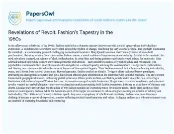 Revelations of Revolt: Fashion's Tapestry in the 1960s. (2024, Jan 09). Retrieved from https://hub.papersowl.com/examples/revelations-of-revolt-fashions-tapestry-in-the-1960s/