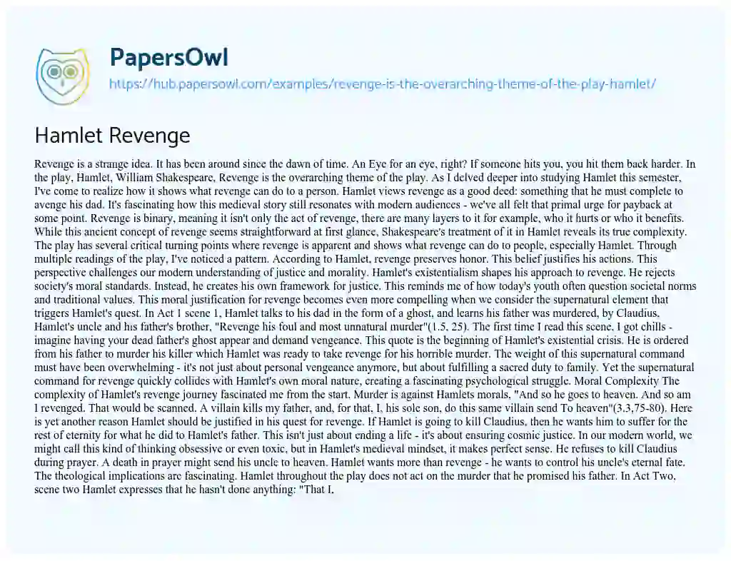 Hamlet Revenge. (2019, Sep 26). Retrieved from https://hub.papersowl.com/examples/revenge-is-the-overarching-theme-of-the-play-hamlet/