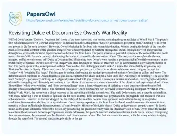 Revisiting Dulce et Decorum Est: Owen's War Reality. (2025, Mar 28). Retrieved from https://hub.papersowl.com/examples/revisiting-dulce-et-decorum-est-owens-war-reality/
