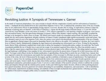 Order now In the early hours of October 3, 1974, officers responded to a call reporting a burglary in progress. Upon arrival, they encountered Garner, who fled upon being challenged. In pursuit, Officer Elton Hymon, without warning, shot and fatally wounded the teenager as he attempted to climb a fence to escape.