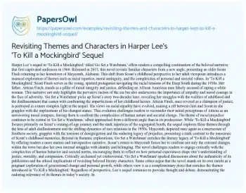 In conclusion, 'Go Set a Watchman' serves as a thought-provoking continuation of Harper Lee’s literary legacy, offering readers a deeper exploration of familiar characters and themes introduced in 'To Kill a Mockingbird.' Through Scout Finch’s journey from childhood innocence to adult disillusionment, the novel challenges readers to reconsider their perceptions of morality, justice, and racial identity in a changing world. By presenting a more complex portrayal of Atticus Finch and the societal tensions of the 1950s South, Lee invites readers to engage critically with the enduring questions raised by her work, ensuring that both novels continue to resonate with audiences and inspire meaningful dialogue for generations to come.