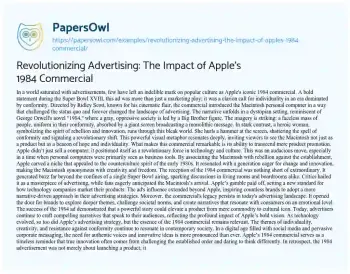 Revolutionizing Advertising: The Impact of Apple’s 1984 Commercial. (2024, Jul 21). Retrieved from https://hub.papersowl.com/examples/revolutionizing-advertising-the-impact-of-apples-1984-commercial/