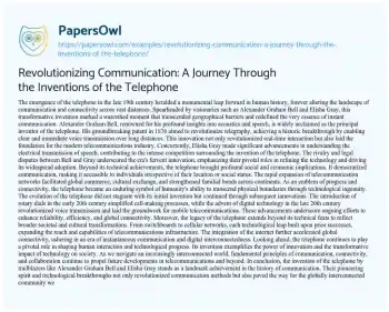 Revolutionizing Communication: A Journey Through the Inventions of the Telephone. (2024, Jun 28). Retrieved from https://hub.papersowl.com/examples/revolutionizing-communication-a-journey-through-the-inventions-of-the-telephone/