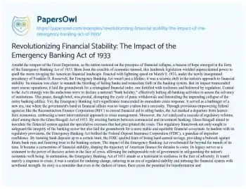 Revolutionizing Financial Stability: The Impact of the Emergency Banking Act of 1933. (2024, Jun 01). Retrieved from https://hub.papersowl.com/examples/revolutionizing-financial-stability-the-impact-of-the-emergency-banking-act-of-1933/