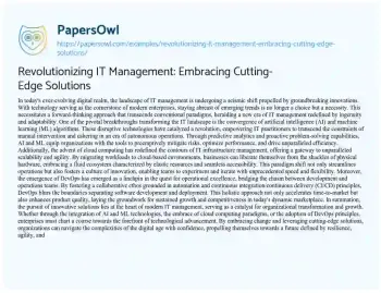 Revolutionizing IT Management: Embracing Cutting-Edge Solutions. (2024, Mar 18). Retrieved from https://hub.papersowl.com/examples/revolutionizing-it-management-embracing-cutting-edge-solutions/