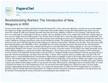 Revolutionizing Warfare: The Introduction of New Weapons in WW1. (2024, Mar 25). Retrieved from https://hub.papersowl.com/examples/revolutionizing-warfare-the-introduction-of-new-weapons-in-ww1/