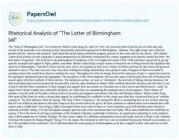 Rhetorical Analysis of “The Letter of Birmingham Jail”