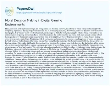Moral Decision Making in Digital Gaming Environments. (2021, Oct 15). Retrieved from https://hub.papersowl.com/examples/right-and-wrong/