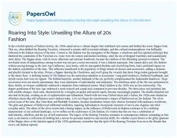 Roaring Into Style: Unveiling the Allure of 20s Fashion. (2024, Jan 26). Retrieved from https://hub.papersowl.com/examples/roaring-into-style-unveiling-the-allure-of-20s-fashion/