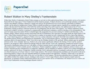 Robert Walton In Mary Shelley's Frankenstein. (2024, Apr 29). Retrieved from https://hub.papersowl.com/examples/robert-walton-in-mary-shelleys-frankenstein/